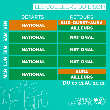 BRIEF Bison Futé est au vert, prochaine coloration vendredi 7 novembre avec de l’orange.